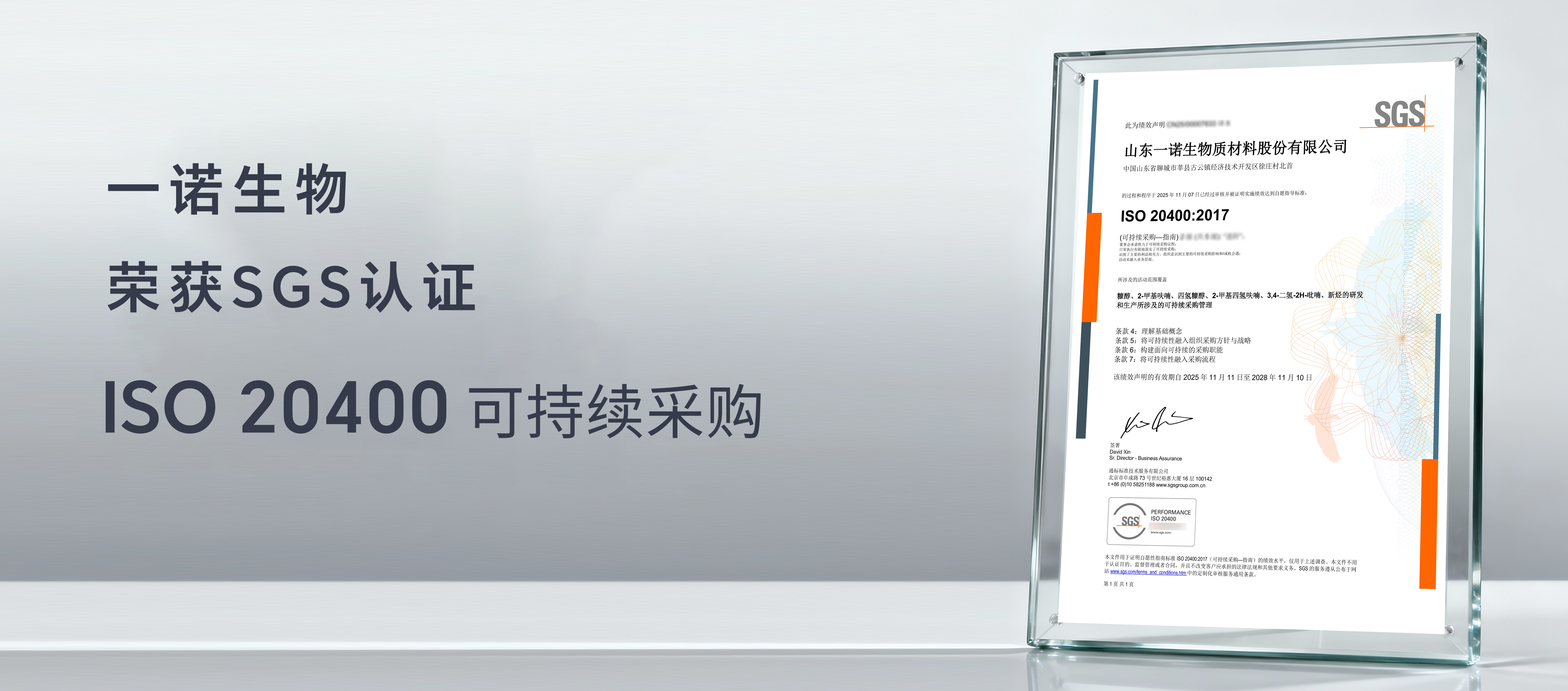 面向未來,一諾生物將持續(xù)深化“玉米芯 → 生物基平臺化學(xué)品 → 高附加值綠色材料”這一路徑的系統(tǒng)化建設(shè),以更高的標(biāo)準(zhǔn)、更科學(xué)的方法和更堅實(shí)的行動,推動非糧生物基行業(yè)邁向更加可持續(xù)、更具國際競爭力的高質(zhì)量發(fā)展方向。ISO 20400 的通過不是終點(diǎn),而是公司邁向更高的可持續(xù)治理水平、更負(fù)責(zé)任供應(yīng)鏈體系以及更具全球影響力的綠色制造企業(yè)的新起點(diǎn)。