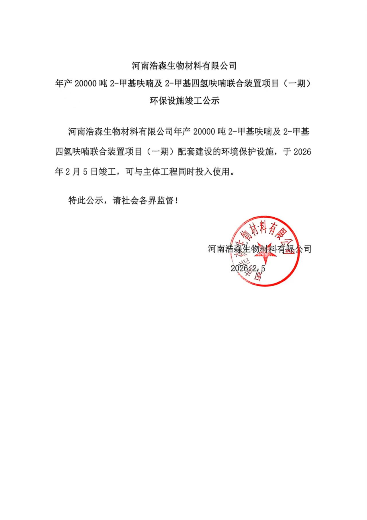 河南浩森生物材料有限公司環(huán)保設(shè)施竣工公示